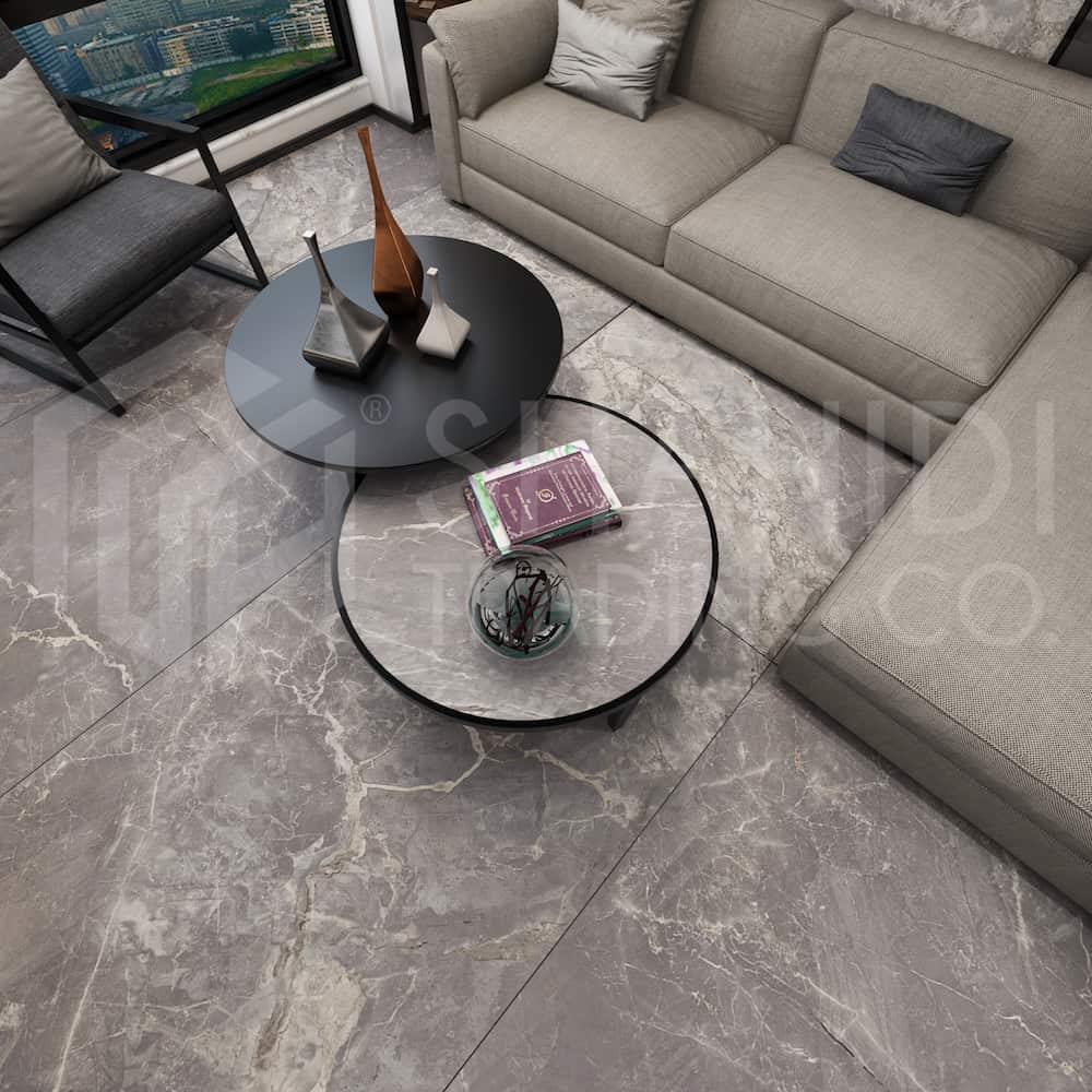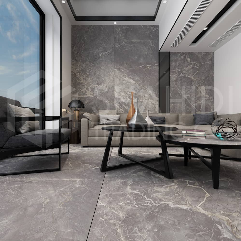 اسلب سرامیک پرسلان مگاکر سری ST-023 با زمینه خاکستری همراه با رگه های بژ و طوسی توازن بصری و زیبایی چشم گیری به ارمغان می آورد.